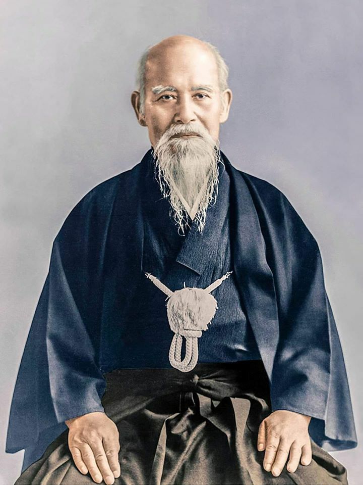 Très tôt attiré par la religion, Morihei UESHIBA (1883-1969), le fondateur de l’Aïkido, s’est voué à l’étude des arts martiaux traditionnels (Ju Jutsu, Ken Jutsu), cherchant en eux une réponse à sa quête spirituelle. Menant une vie d’ascétisme et de travail, riche en évènements, et convaincu que la paix était le but du Budo authentique, il définit un nouvel art martial, qu’il commença à enseigner en 1922 sous le nom d’Aïki-Bujutsu. A partir de 1948, son art qui prit le nom d’Aïkido, se développa au Japon et à l’étranger, le fondateur poursuivant une pratique constante et inspirée jusqu’à la fin de ses jours.
